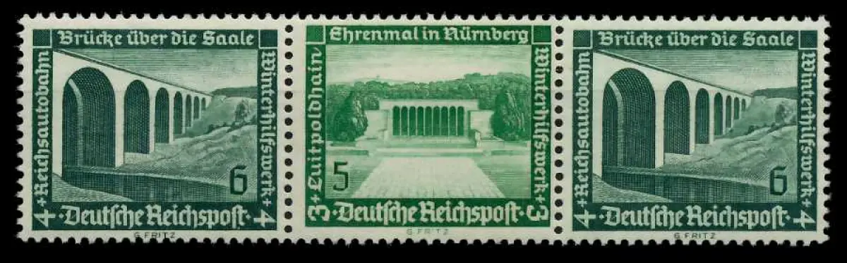 6 + 5 + 6 Zusammendruck aus der Ausgabe Winterhilfswerk 1936 (MichelNr.: 101220, 636, 637, 636)