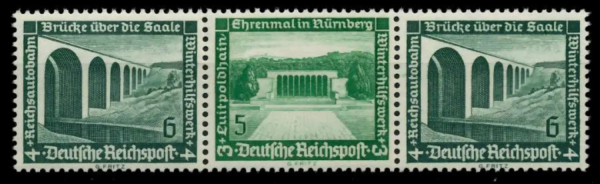 6 + 5 + 6 Zusammendruck aus der Ausgabe Winterhilfswerk 1936 (MichelNr.: 101220, 636, 637, 636)