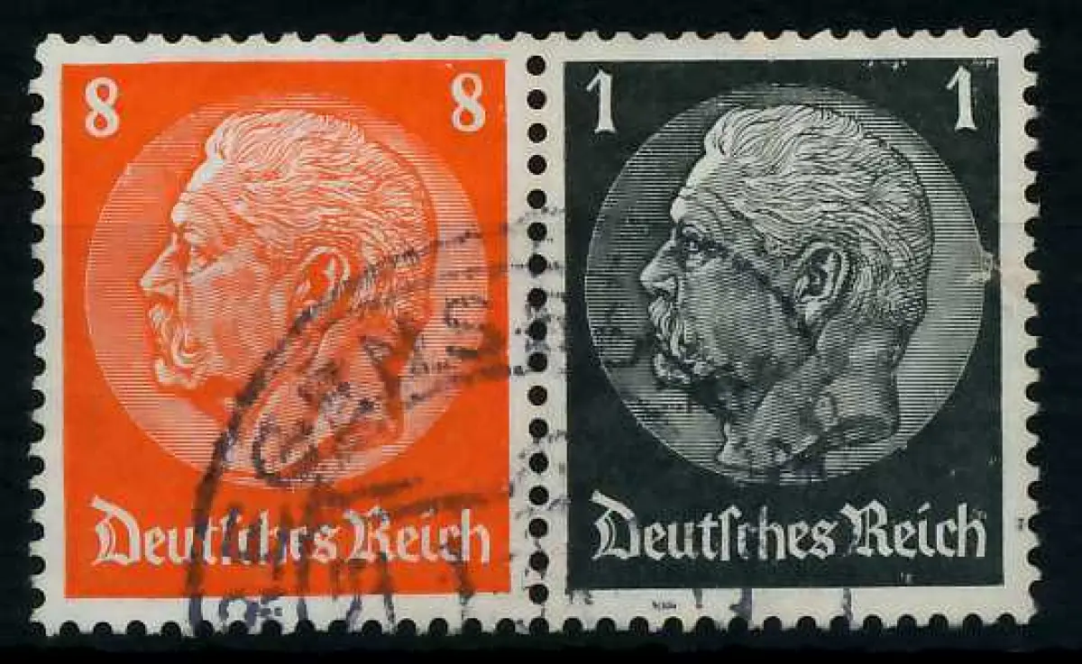 8 + 1 Zusammendruck aus der Ausgabe Hindenburg mit WZ4 (MichelNr.: 100640, 517, 512)