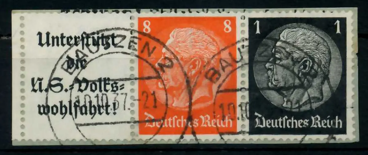 A8.1 + 8 + 1 Zusammendruck aus der Ausgabe Hindenburg mit WZ4 (MichelNr.: 100650, A8.1, 517, 512)