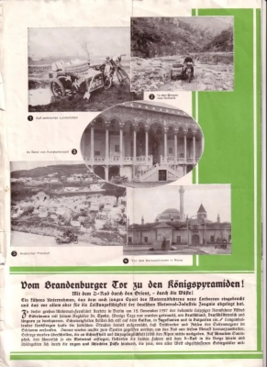 6 Seiten DinA4 Vom Brandenburger Tor zu den Königspyramiden Leichte Gebrauchsspuren, unten gering wellig und schmutzig