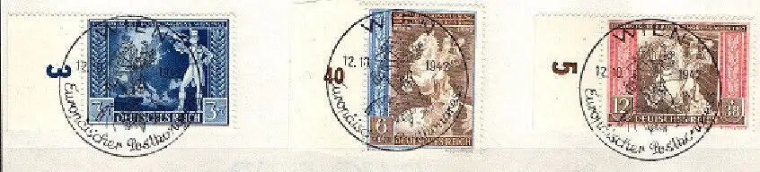 Deutsches Reich, Michel Nr. 820-822 FDC mit Seitenrand, Europäischer Postkongress 1942.