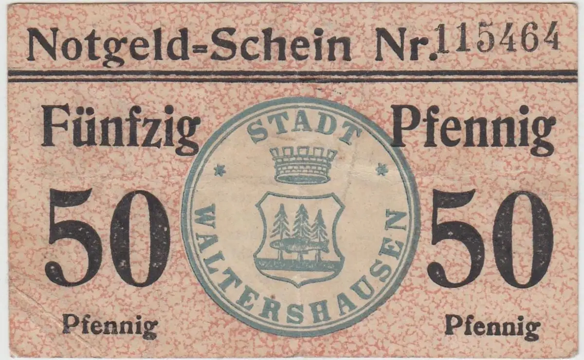 - (D1208) Geldschein 50 Pf. Notgeld d. Stadt Waltershausen 1920/21
