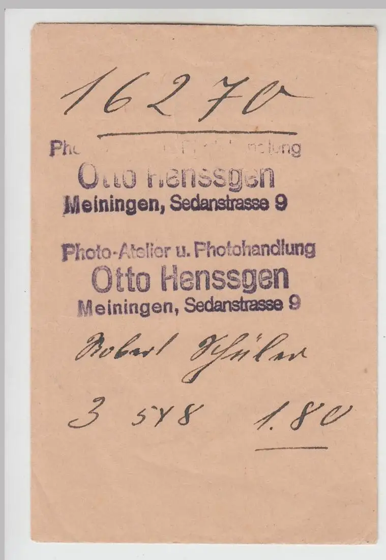 (D1220) Papierhülle m. Stempel Photoatelier Otto Henssgen, Meiningen