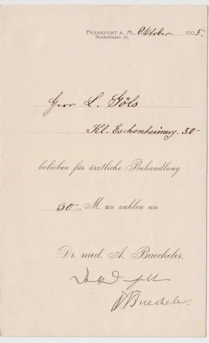 (D1227) Rechnung Dr. med. A. Buechekler, Frankfurt a.M. 1905