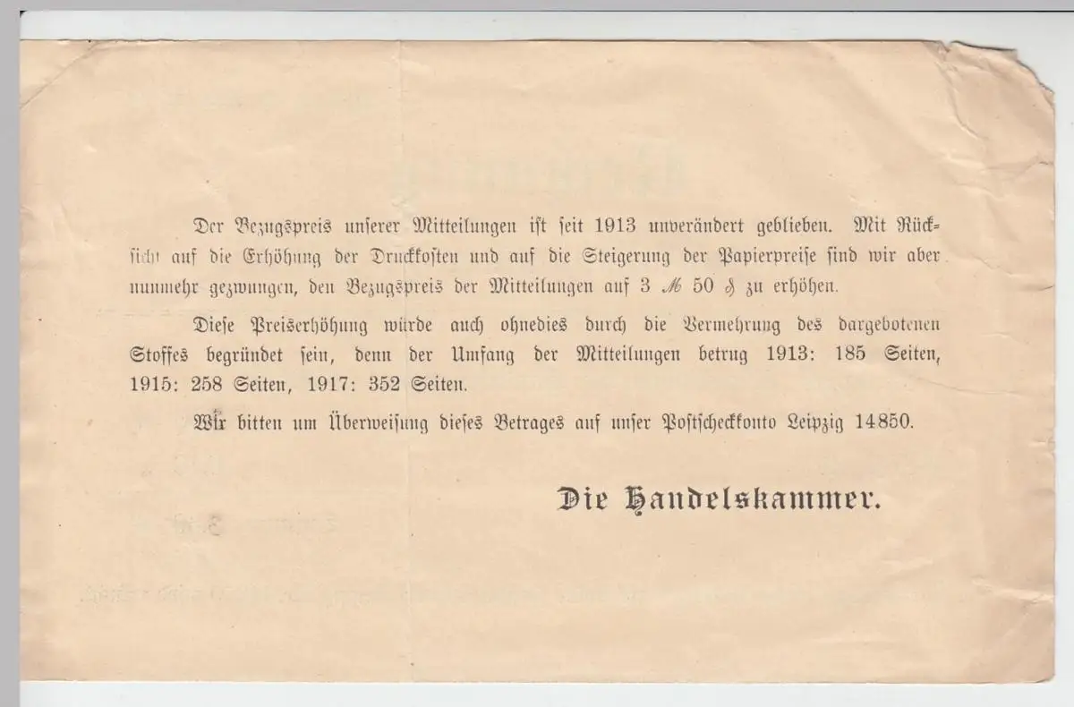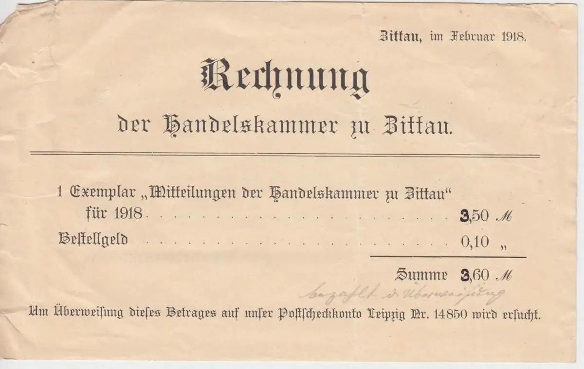 - (D587) Rechnung der Handelskammer zu Zittau 1918