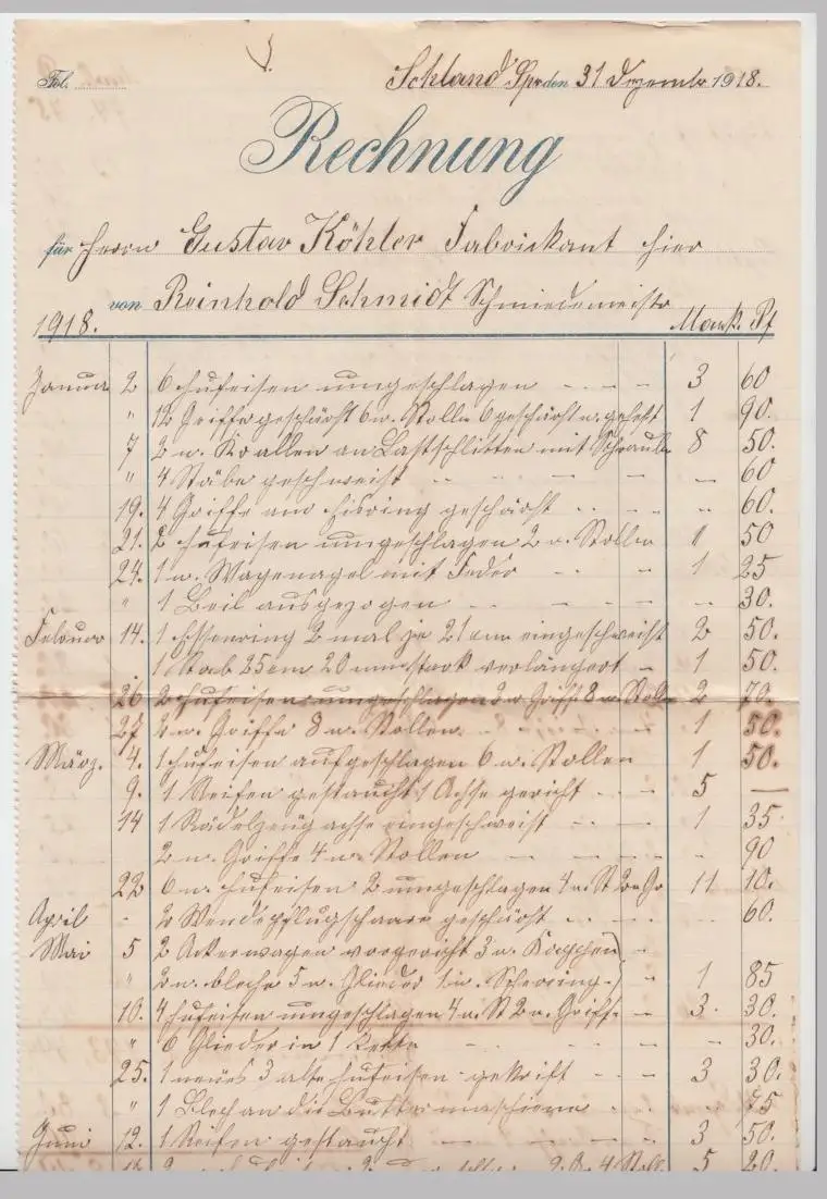 - (D589) Rechnung an Fabrikant Gustav Köhler, Sohland 1918