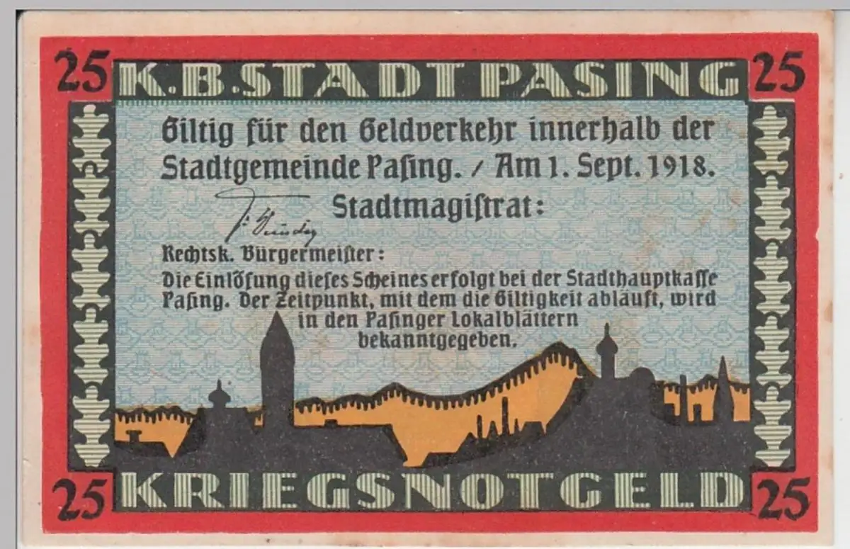- (D877) Notgeld der Stadt Pasing, 25 Pfennig 1918, Version 1