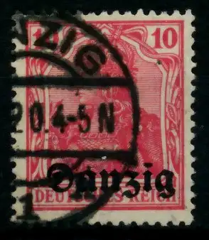 10 Pfg Wert aus der Aufdruckausgabe Danzig auf den Freimarken des deutschen Reiches (Germania)