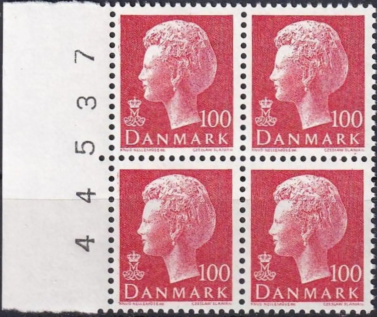 DÄNEMARK 1976 Mi-Nr. 624y ** MNH Viererblock mit Bogennummer