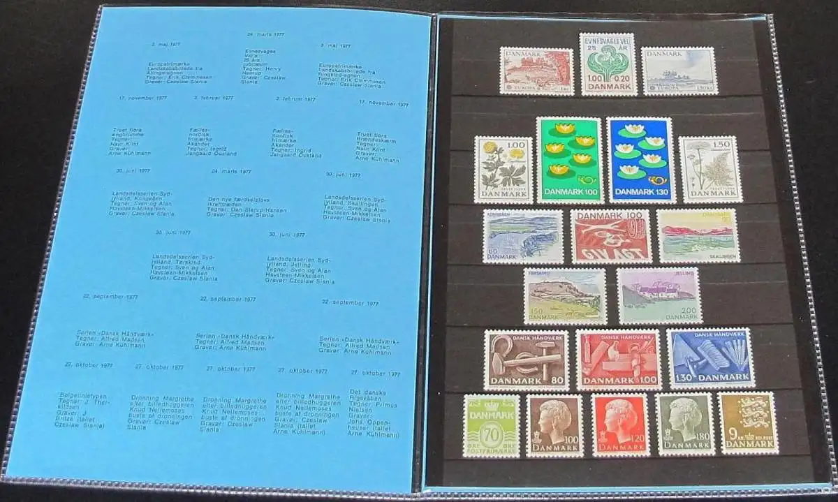 DÄNEMARK 1977 Mi-Nr. 635-654 Jahresmappe - year set ** MNH