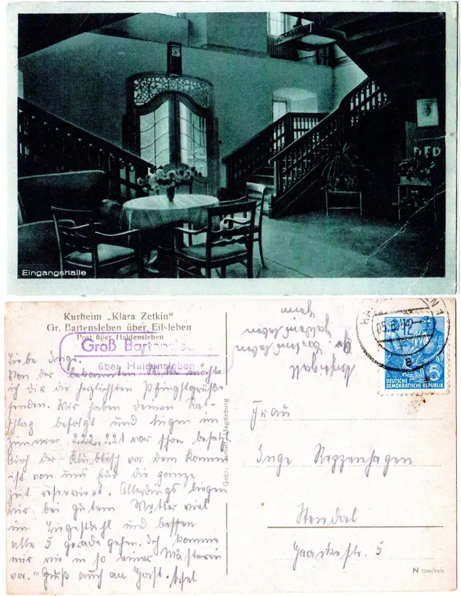 DDR 1954, Landpoststpl. GROSS BARTENSLEBEN über Haldensleben auf sw-AK m. 12 Pf.