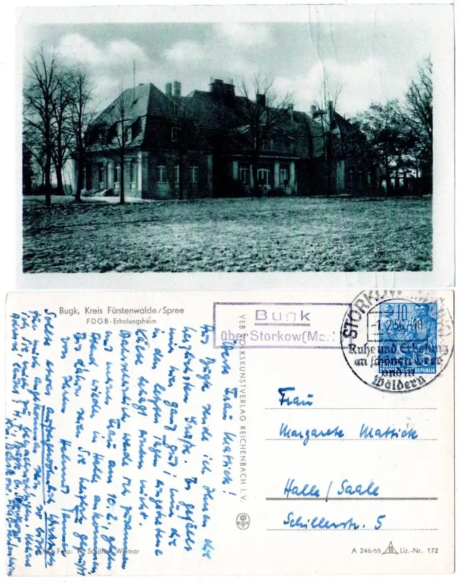 DDR 1956, Landpoststpl. BUGK über Storkow auf sw-AK m. 10 Pf.