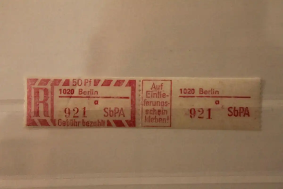 DDR 1968 SbPA - Einschreibe-Gebührenzettel 1020 Berlin, 921 a I **Z
