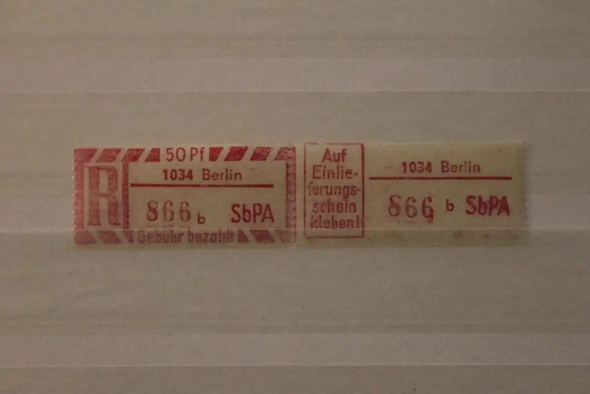 DDR 1968 SbPA Einschreibemarke Gebührenzettel 2C; b, 1034 Berlin, **Z
