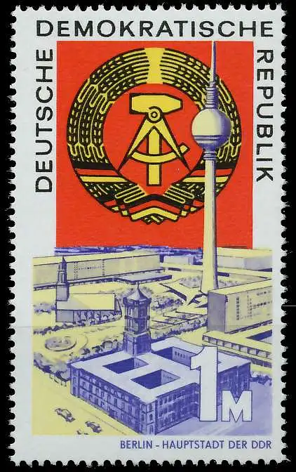 1 M Wert aus der Block-Ausgabe 20 Jahre DDR - Gebäude - Fernsehturm