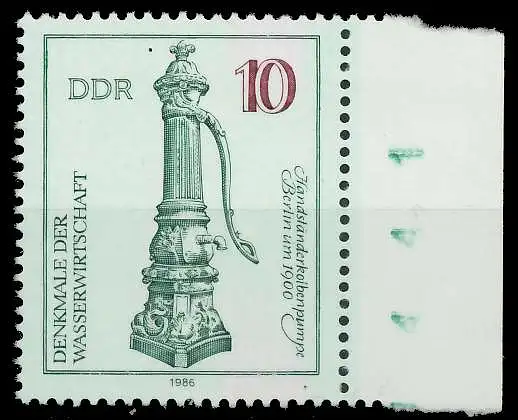 10 Pfg Wert aus der Ausgabe Denkmale der Wasserwirtschaft, Seitenrand mit Bogennummer