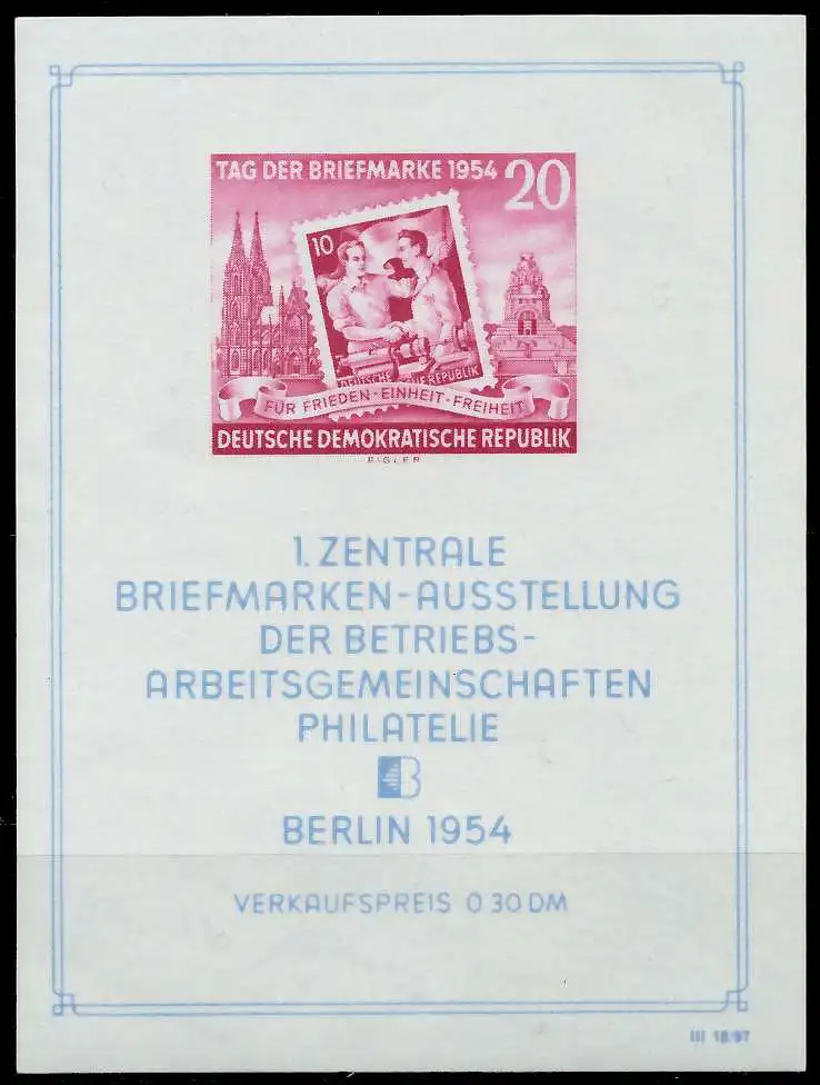 Blockausgabe 20 Pfg Wert Tag der Briefmarke 1954