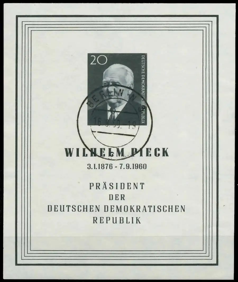 Blockausgabe Wilhelm Pieck mit Tagesstempel