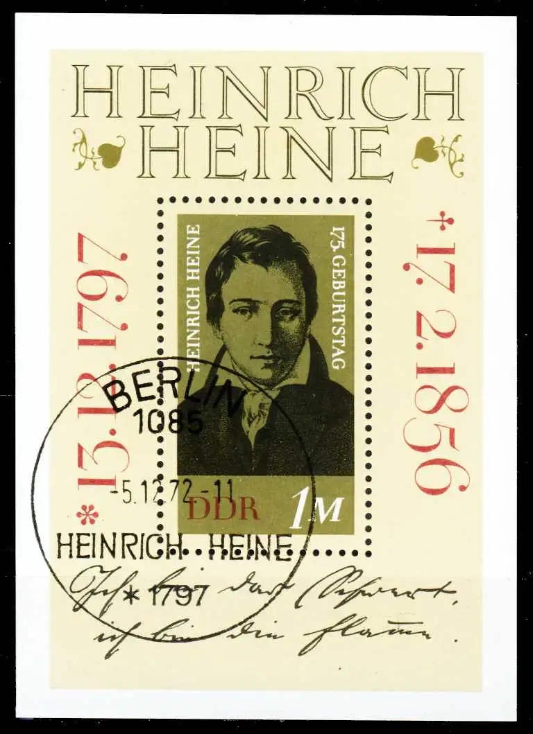 Block-Ausgabe 175. Geburtstag von Heinrich Heine, mit Sonderstempel