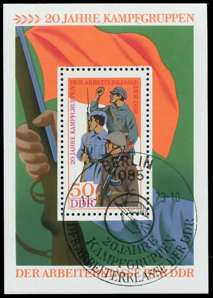 Block-Ausgabe 20 Jahre Kampfgruppen, mit Sonderstempel