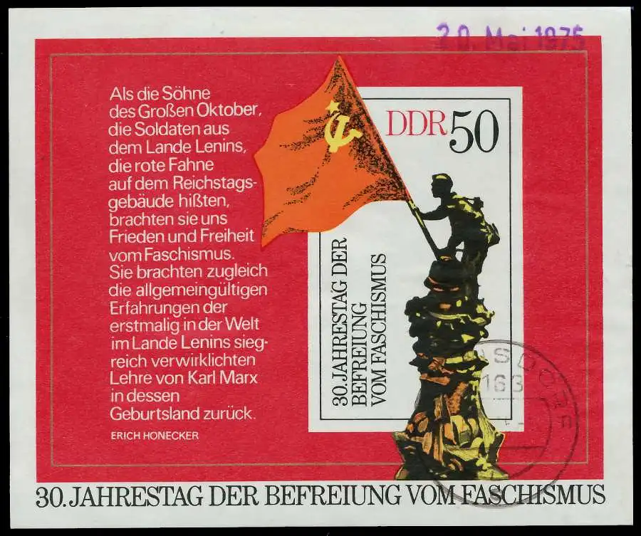 Block-Ausgabe 30. Jahrestag der Befreiung vom Faschischmus,aus dem Bedarf, etwas wellig