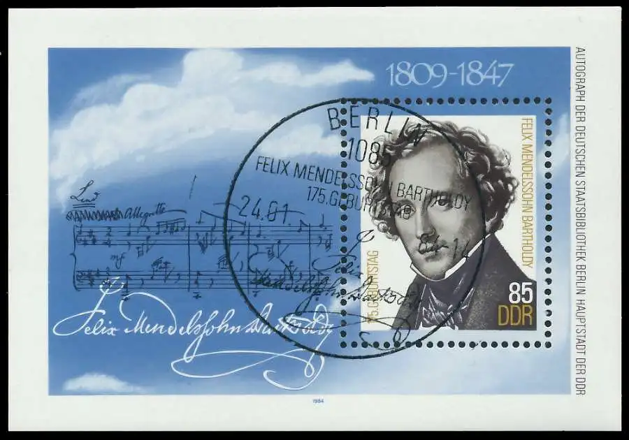 Block-Ausgabe 175. Geburtstag von Felix Mendelsohn Bartholdy, mit Sonderstempel