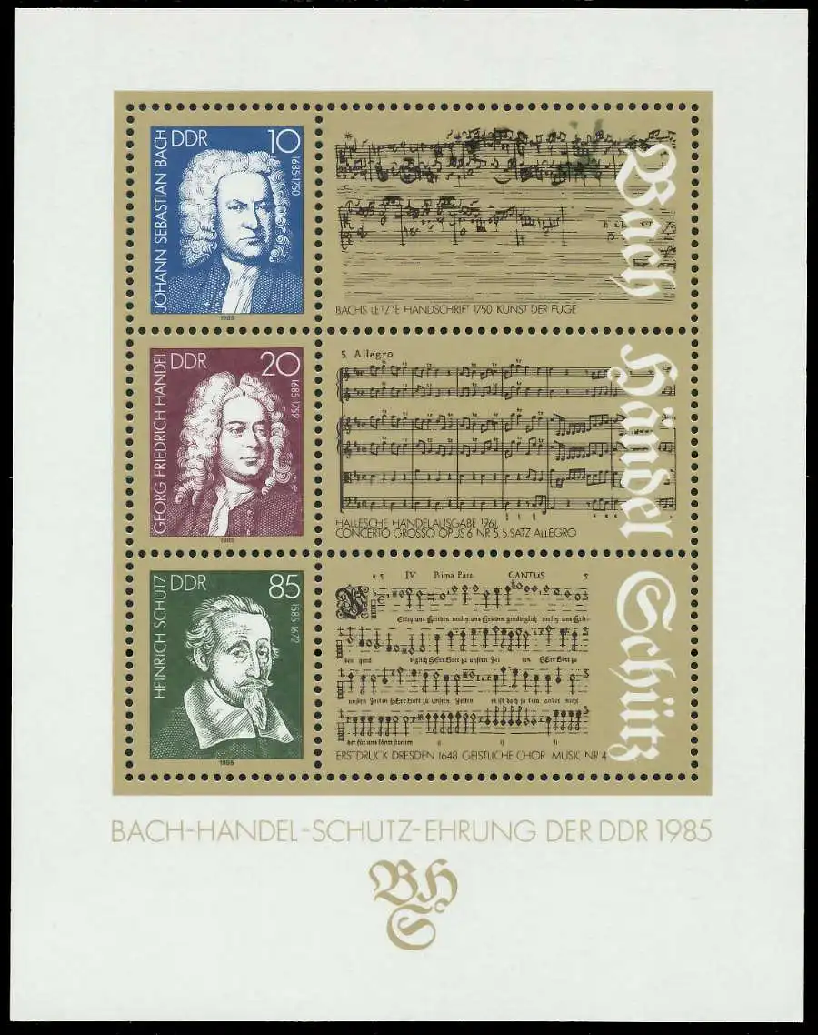 Block-Ausgabe Bach - Händel - Schütz Ehrung der DDR 1985