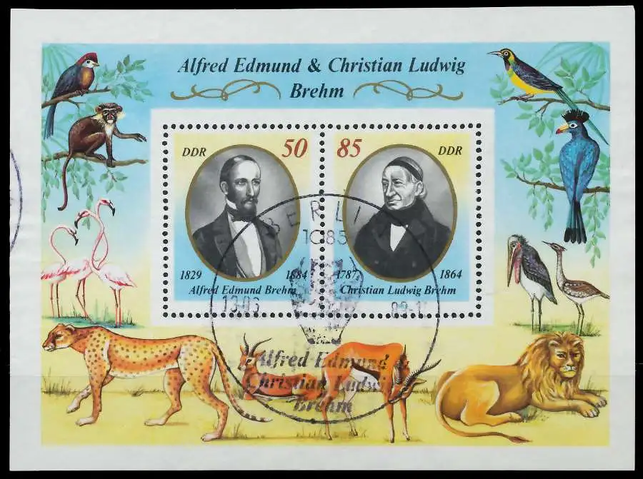 Block-Ausgabe Alfred Edmund und Christian Ludwig Brehm, mit Sonderstempel