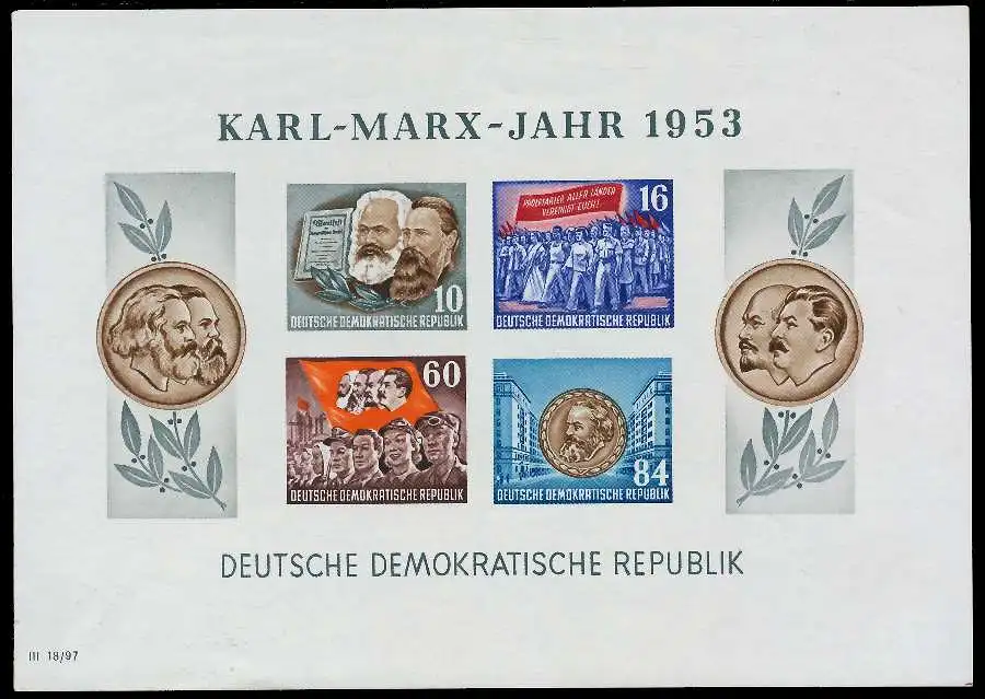 Blockausgabe Karl Marx Jahr (gezähnt), leichte Druckbüge