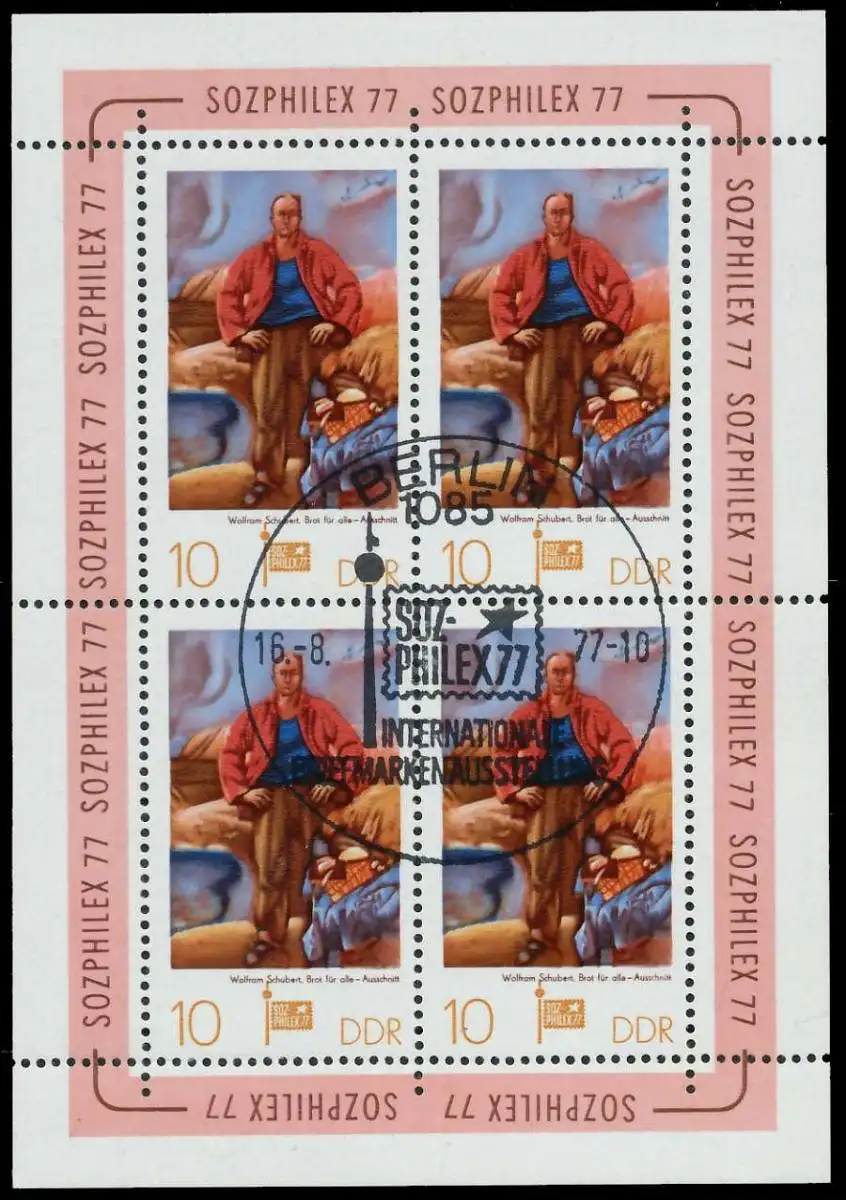 10 Pfg Wert aus der Ausgabe SOZPHILEX 77 im Kleinbogen zu 4 Marken