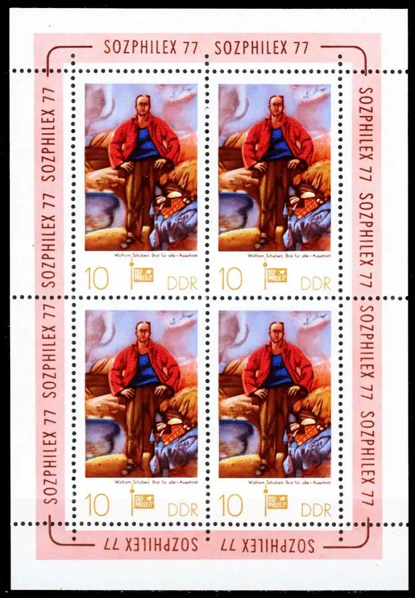 10 Pfg Wert aus der Ausgabe SOZPHILEX 77 im Kleinbogen zu 4 Marken