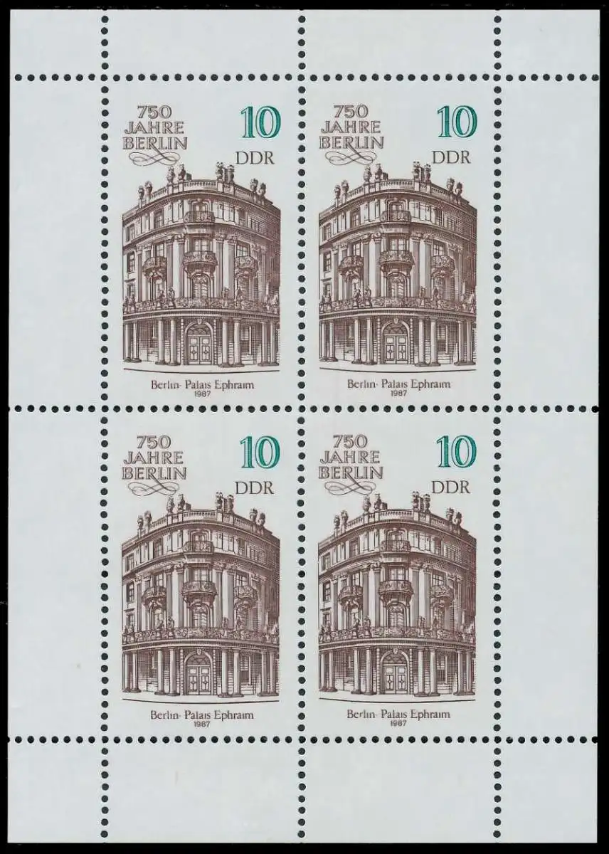 10 Pfg Wert aus der Ausgabe 750 Jahre Berlin, im Kleinbogen zu 4 Marken