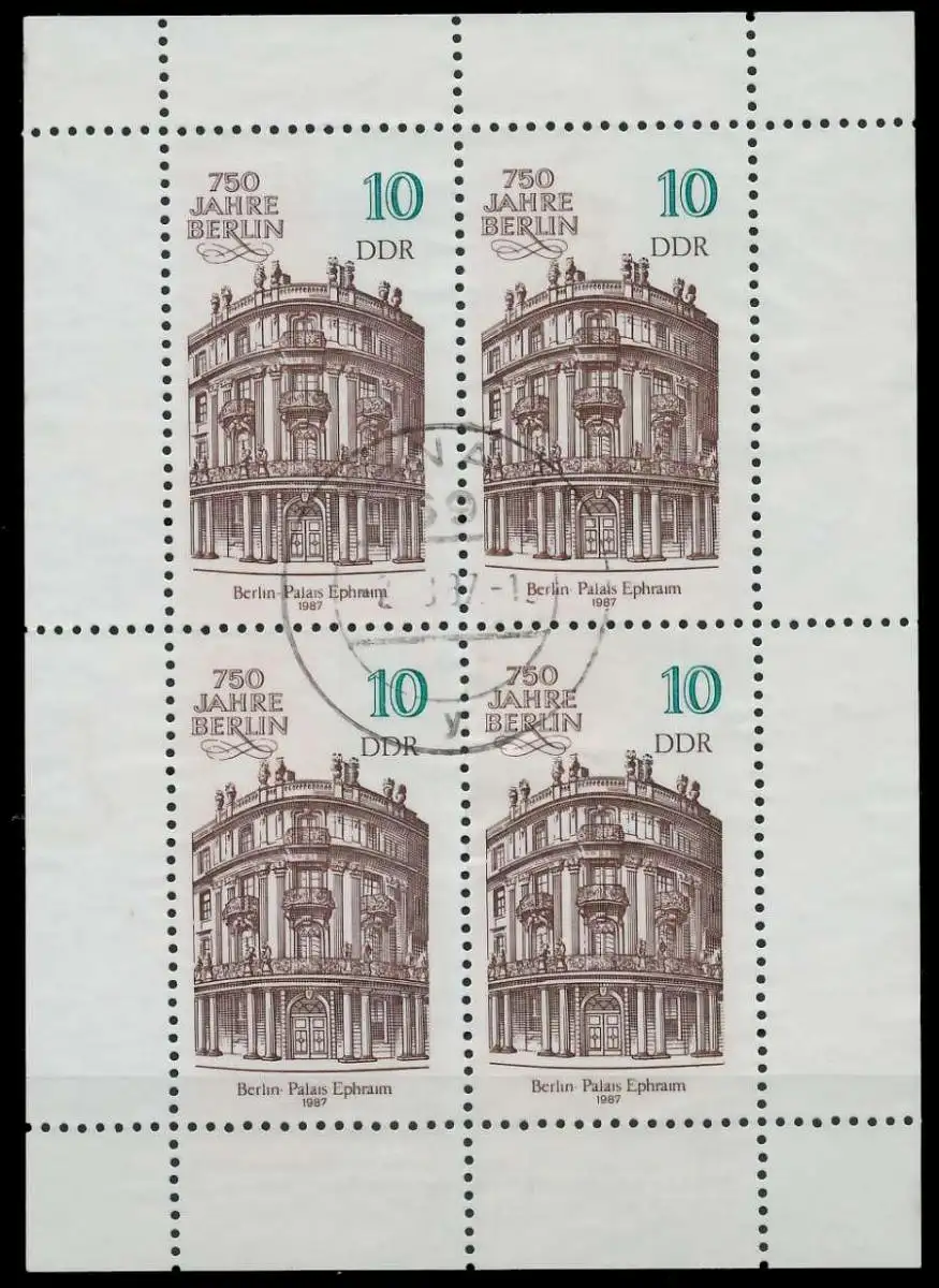 10 Pfg Wert aus der Ausgabe 750 Jahre Berlin, im Kleinbogen zu 4 Marken