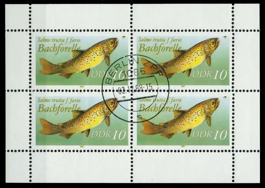 10 Pfg Wert aus der Ausgabe Fische - Bachforelle (mit Jahreszahl), im Kleinbogen zu 4 Marken