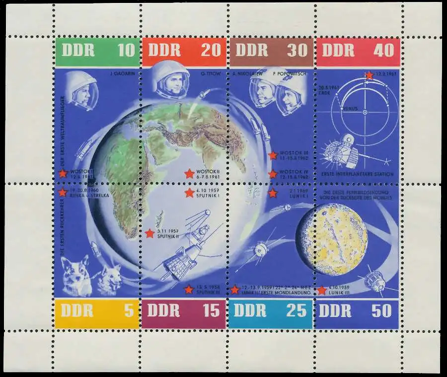 Ausgabe 5 Jahre sowjetische Weltraumflüge - Kleinbogen rechts durchgezähnt (MichelNr.: 926, 927, 928, 929, 930, 931, 932, 933)