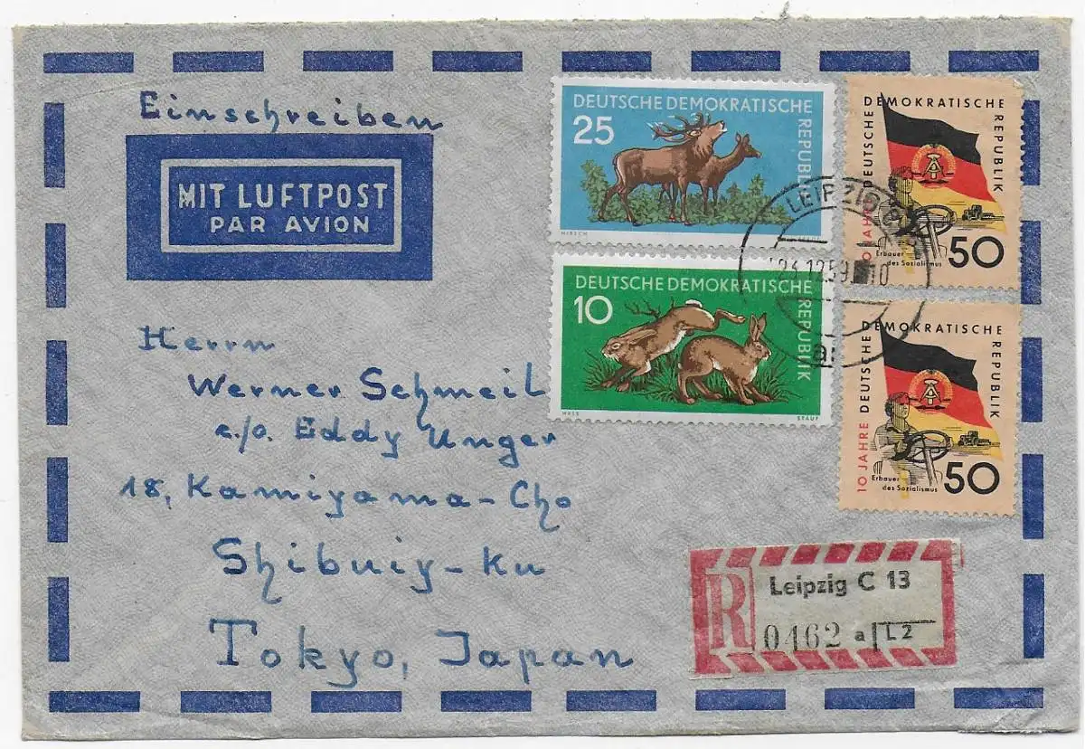 DDR: Einschreiben Luftpost Leipzig, 1959 nach Tokyo Japan