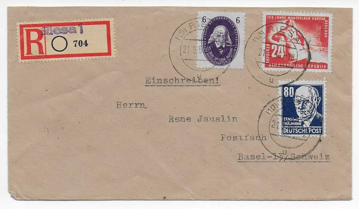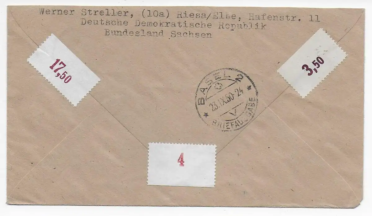 DDR: Einschreiben Riesa nach Basel, 1950