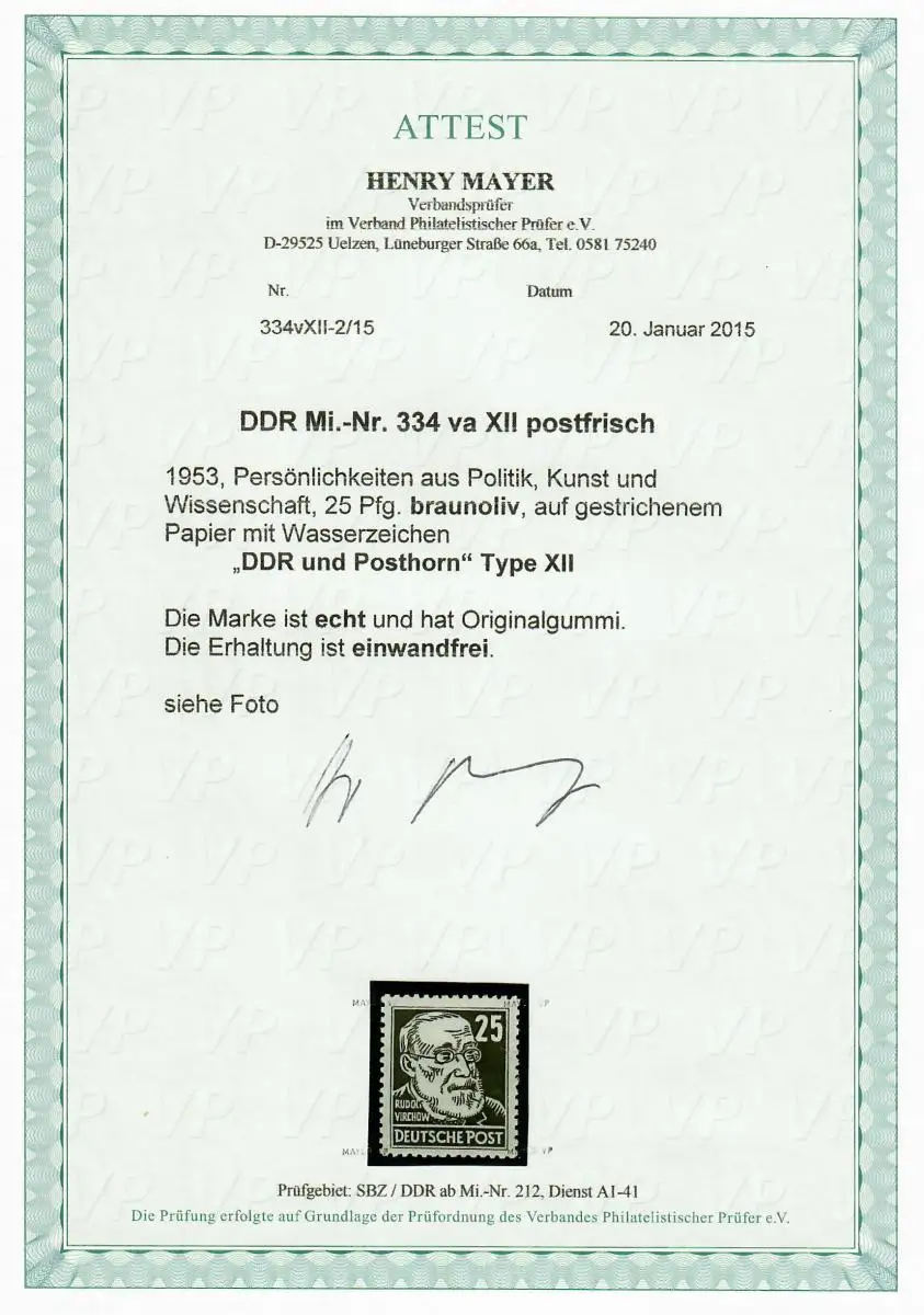 DDR MiNr. 334 va XII, Wz: DDR und Posthorn, postfrisch, **