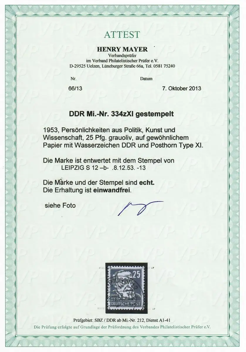 DDR MiNr. 334zXI, gestempelt Leipzig