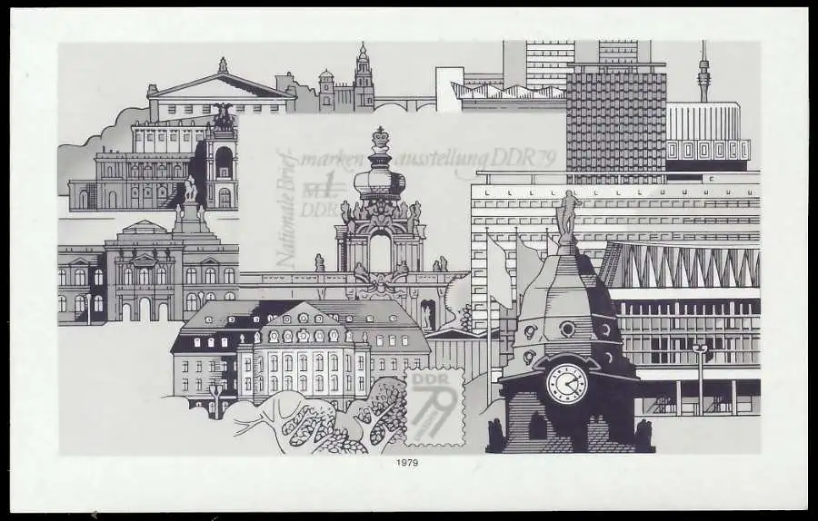Schwarzdruck der Blockausgabe Nationale Briefmarkenausstellung 1979 ohne Gummierung