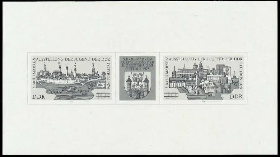 Ausgabe Briefmarkenausstellung der Jugend in Cottbus Dreierstreifen als Schwarzdruck ohne Gummierung