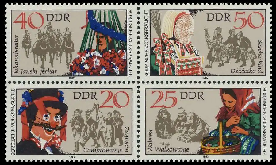 Ausgabe Sorbische Volksbräuche im Zusammendruck-Viererblock (MichelNr.: 2720, 2721, 2717, 2718)