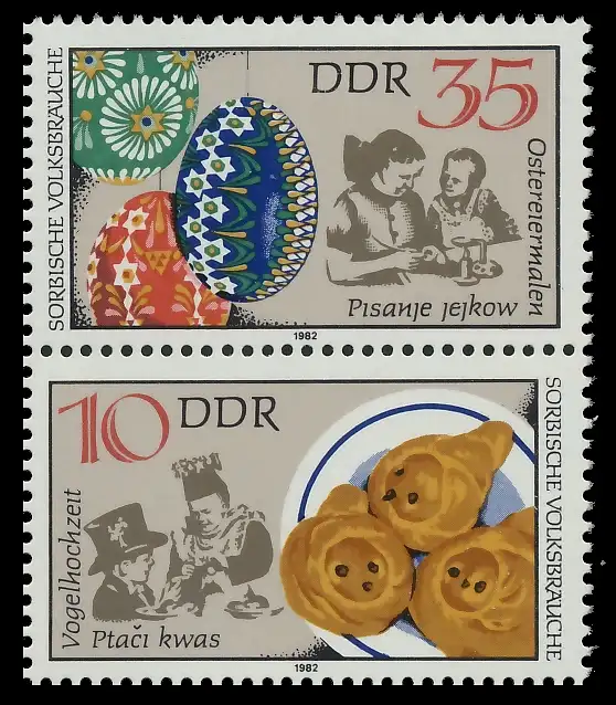 35 + 10 Zusammendruck aus der Ausgabe Sorbische Volksbräuche (MichelNr.: 246, 2719, 2716)