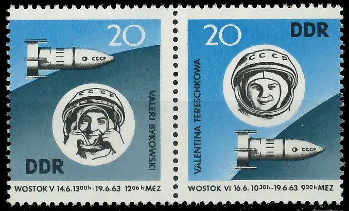 Kategorie 1: Deutschland, DDR, Zusammendrucke DDR, DDR ZD Ausgaben 1963 Raumschiffe Wostok 5 und 6