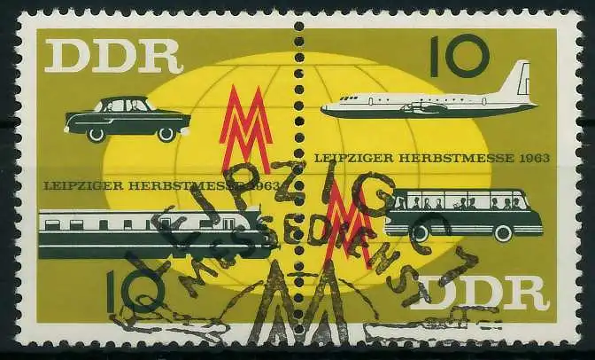 10 + 10 Zusammendruck-Ausgabe Leipziger Herbstmesse 1963 (MichelNr.: 94, 976, 977)