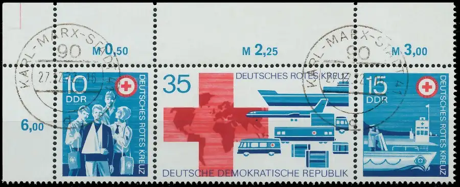 10 + 35 + 15 Pfg Wert aus der Ausgabe Rotes Kreuz der DDR Dreierstreifen (MichelNr.: 272, 1789, 1790, 1791)