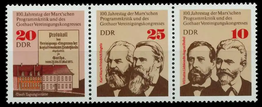 20 + 25 + 10 Pfg aus der Ausgabe 100. Jahrestag Zusammenschluß der Parteien zur Sozalistischen Arbeiterpartei Deutschlands (MichelNr.: 329, 2050, 2051, 2052)