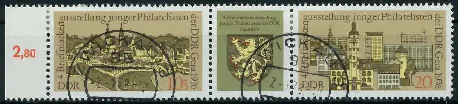 10 + ZF + 20 Wert aus der Ausgabe Briefmarkenausstellung junger Philatelisten der DDR / Dreierstreifen (MichelNr.: 332, 2153, 2154)