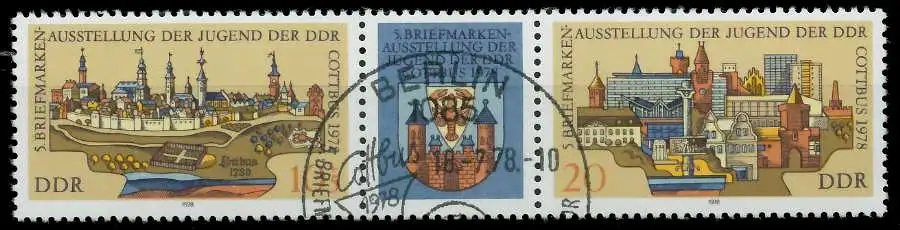 10 + ZF + 20 Ausgabe Briefmarkenausstellung der Jugend in Cottbus Dreierstreifen (MichelNr.: 371, 2343, 4344)
